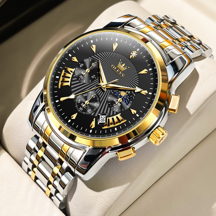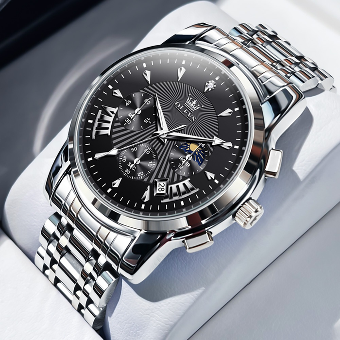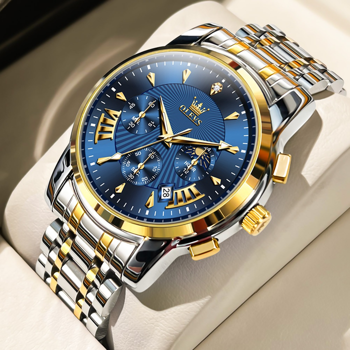 OLEVS Relógio Masculino Multifuncional A Prova D'água Azul & Preto Luminoso De Aço Inoxidável 2892