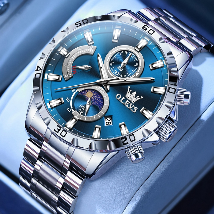 OLEVS Relógio Masculino Relogio A Prova D'água Luxo Original De Aço Inoxidável Multifuncional Luminoso 2953