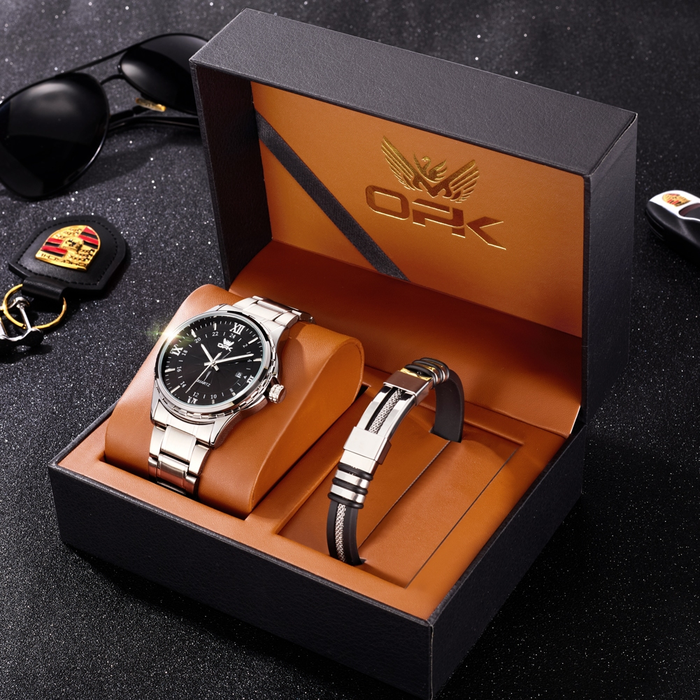 OPK Relógios Masculino Relogio À prova de água Original Esportivo Preto Prata De Aço Inoxidável 6003